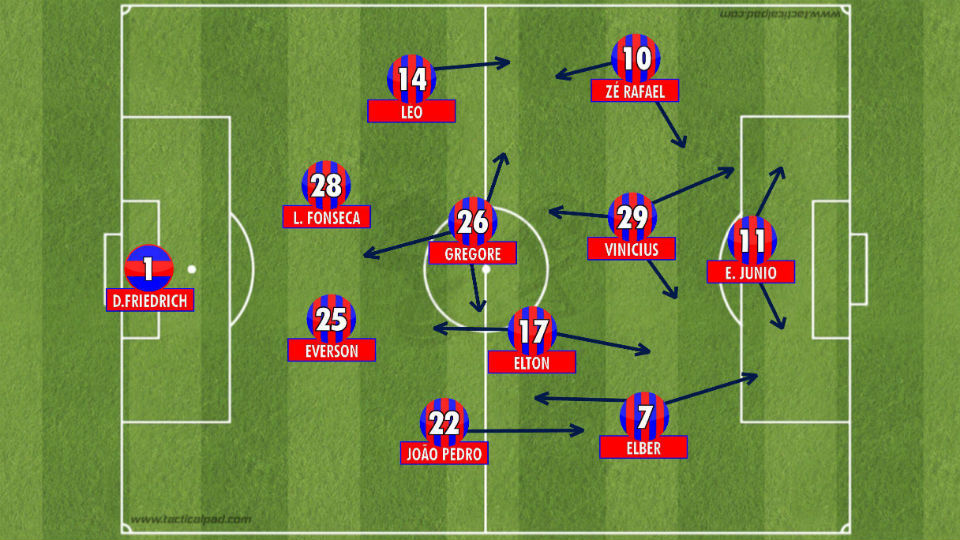 BAHIA: Douglas Friedrich; João Pedro, Everson, Lucas Fonseca e Léo; Gregore e Elton; Elber (Allione, 23’/2T), Vinicius (Régis, 33’/2T) e Zé Rafael; Edigar Junio (Kayke, 38’2T)