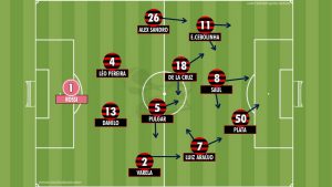 Há quem diga que é um 4-2-3-1. Para este autor é um 4-4-2. São números de telefone, lembra insistentemente Guardiola em seu livro. Mas fato é que Filipe organizou o Flamengo para dar voz e protagonismo a Arrascaeta. Não é mais o meia que caía da esquerda ao centro no ano dourado de 2019. Tampouco o meia por trás dos atacantes no tri da Libertadores. Nem camisa 14 mais é. É 10. Nota dez. Diz-se que Filipe é discípulo direto de Jorge Jesus. Bebeu da fonte do mestre para adaptar ao seu estilo. Pois já no início de 2020 Arrascaeta aparecia como um segundo atacante, uma sacada do português que revolucionou o futebol por essas bandas. Filipe assim o fez. Arrascaeta é o segundo atacante, logo ao lado do centroavante. Perto do gol. Mais fácil para finalizar. Menos a se desgastar.