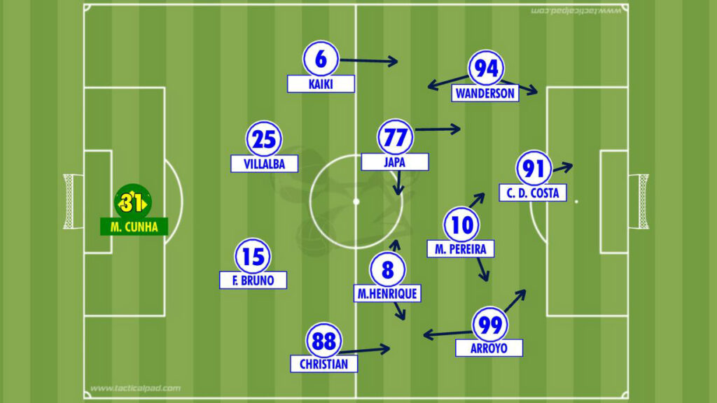 CRUZEIRO: Cássio (Matheus Cunha, 16’/2T), Fagner (Arroyo, 40’/2T), Fabrício Bruno, Villalba e Kaiki; Matheus Henrique e Lucas Silva (Japa, 40’/2T); Christian, Matheus Pereira e Gerson (Wanderson, 32’/2T); Neyser (Chico da Costa, 14’/2T)
